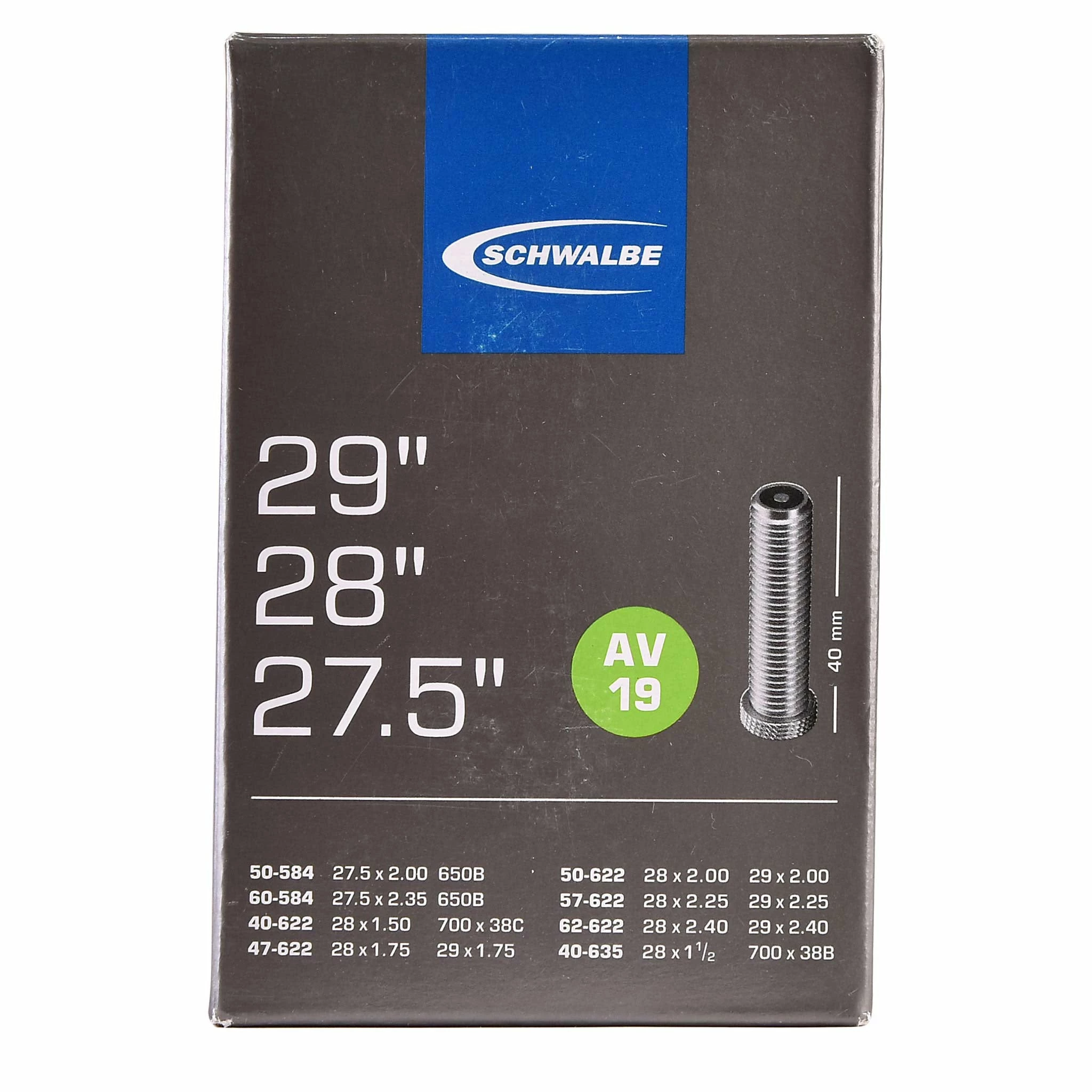 La chambre à air AV19 de Schwalbe convient aux pneumatiques de dimensions suivantes (ETRTO / Taille) :
