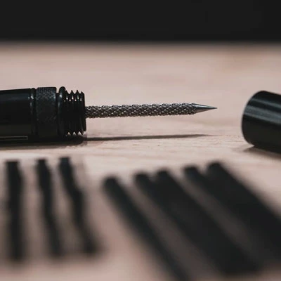 - Ensuite, élargissez le trou avec la lime à pointe en acier disponible dans le kit. Installez la mèche dans l’aiguille et entrez le tout dans la perforation