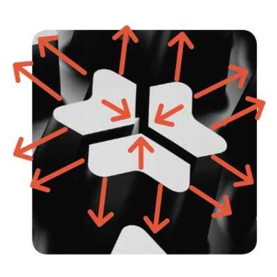 Spécialement étudié pour évoluer en ville par toutes saisons, ce pneu pour vélo bénéficie d’un grip et d’une adhérence exceptionnels sur tous types de sols glissants grâce à un design inédit de la sculpture du pneu en étoiles. La forme en étoile offre un nombre maximal d’arêtes qui confèrent une adhérence multidirectionnelle pour un grip très élevé.