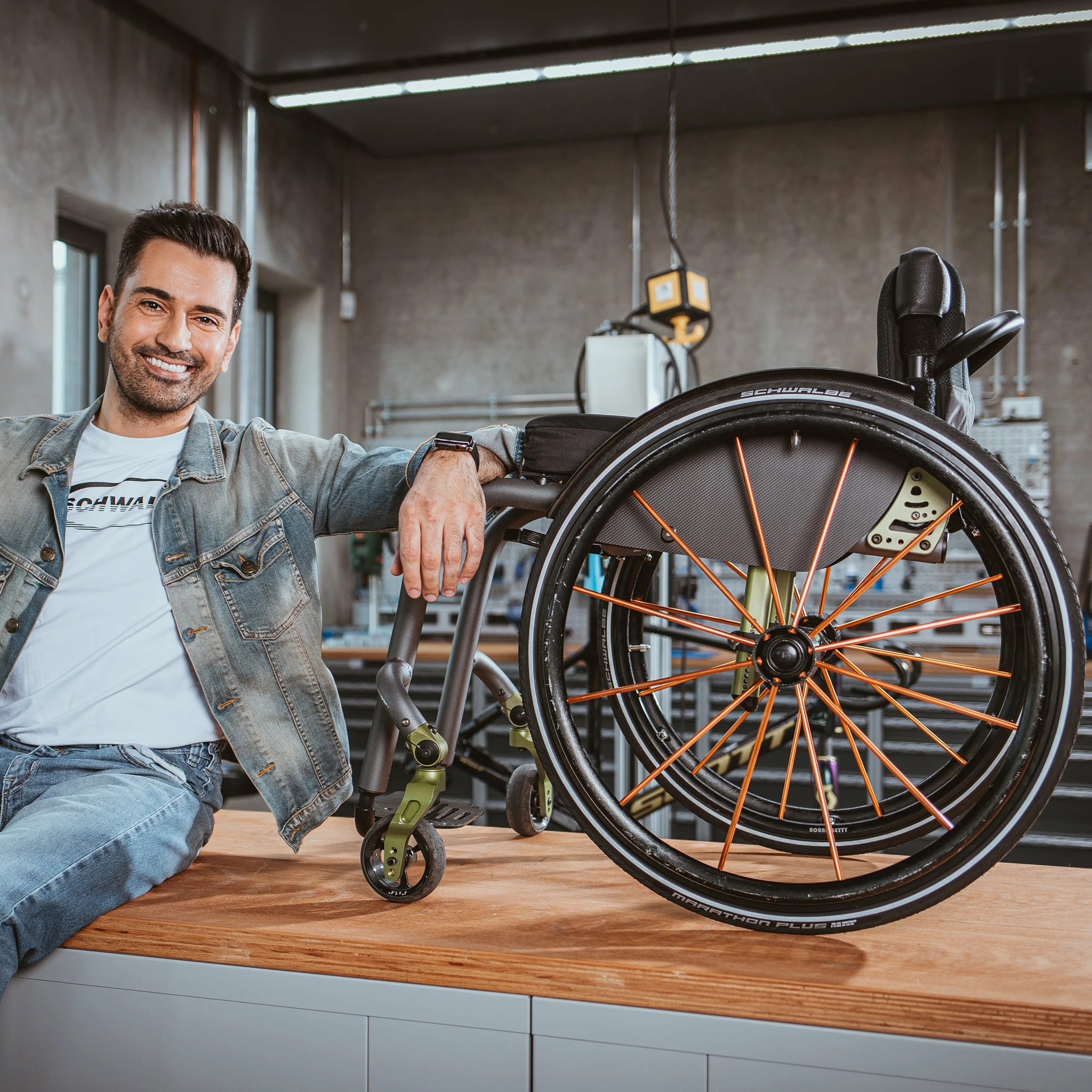 Le pneu Marathon Plus est également une référence pour les personnes en fauteuil roulant. Son mélange de gomme Black’n’Roll noir, spécifiquement étudié pour un usage du pneu en intérieur, est non salissant, ne laissant ainsi pas de trace sur le sol et est particulièrement robuste. Doté de l’homologation E-Bike Ready, le pneu peut également équiper les vélos à assistance électriques allant jusqu’à 25 km/h (E-25).