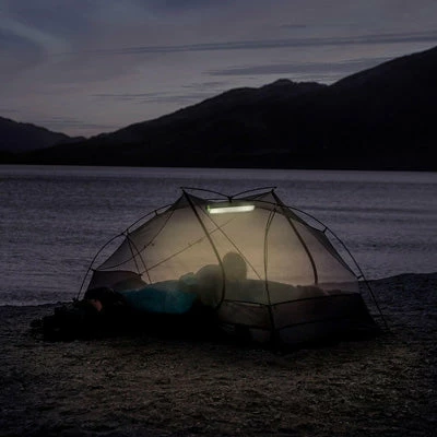 Le système Fairshare : La tente est rangée dans plusieurs housses de transport – une pour les arceaux, deux pour la tente elle-même. Ainsi, vous pouvez répartir le poids dans votre sacoche ou encore vous partagez la charge à porter. Ces housses de transport se transforment ensuite en sacs de rangement à attacher à l’intérieur de la tente grâce à des boutons pressions. Vous bénéficiez ainsi de petites sacoches pour y compartimenter vos affaires. La housse qui contient les arceaux se transforme en système d’éclairage Lightbar. En effet, vous pouvez y glisser une lampe de randonnée et ensuite attacher la housse au toit de la tente – servant ainsi de source de lumière le soir venu.